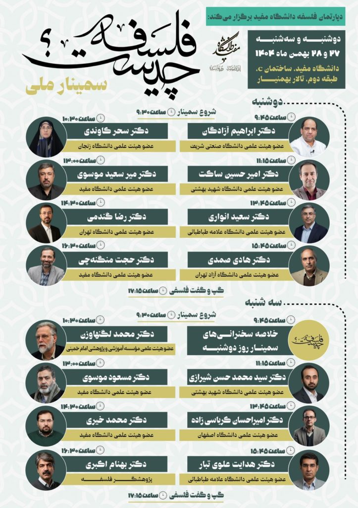 همایش ملی «فلسفه چیست؟» در دانشگاه مفید برگزار میشود (۲۷ و ۲۸ بهمنماه ۱۴۰۴)