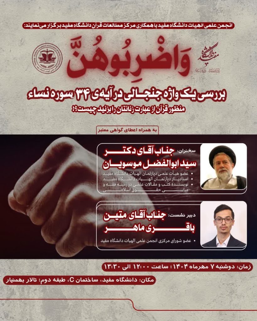 انجمن علمی الهیات دانشگاه مفید با همکاری مرکز مطالعات قرآن دانشگاه مفید برگزار مینمایند: