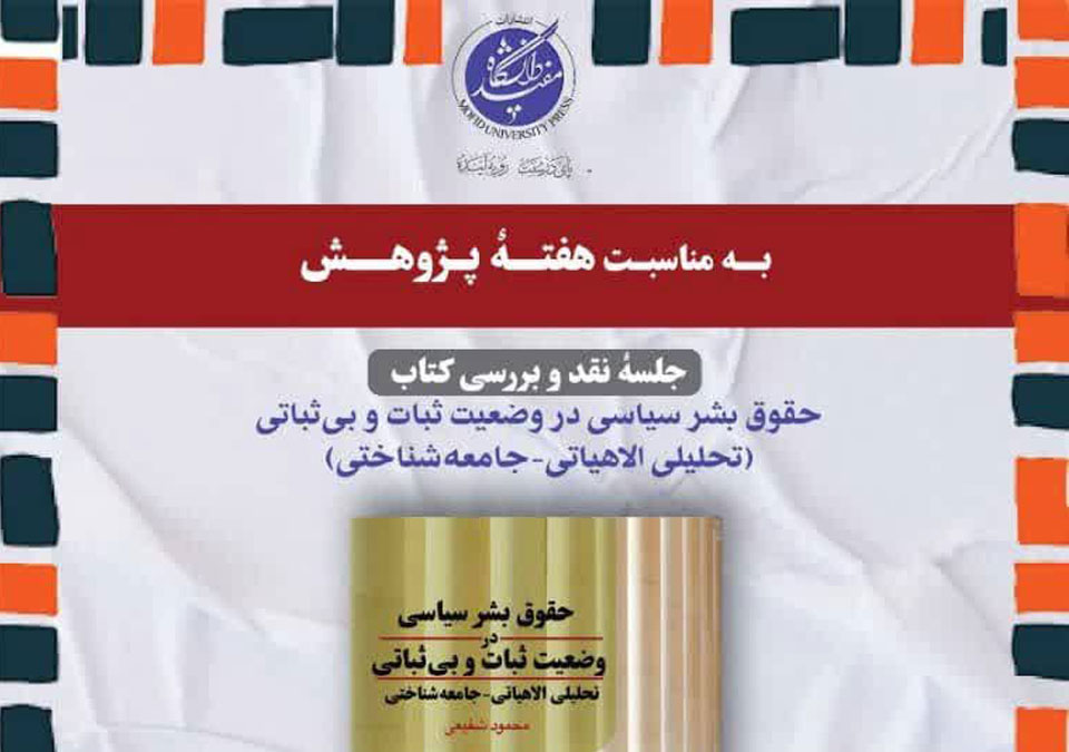 به اطلاع می رساند، مركز مطالعات قرآن دانشگاه مفید نشست علمی نقد و بررسی كتاب « انتقاد دينی و سياسی در قرآن و سنت» نوشته دكتر محمد حسن موحدی ساوجی، رئیس و استادیار دپارتمان الهیات دانشگاه مفید را روز دوشنبه 18 اسفند ماه 1399 ساعت 10 تا 12 به صورت مجازی برگزار می نمايد.